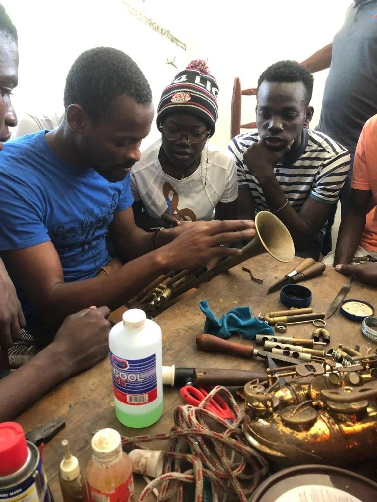 A born teacher, Herold, along with his European mentors, developed a three-module training series covering the fundamentals of band instrument repair. This series will be offered across all Haitian departments, empowering music programs to train local repair technicians. We'll continue to provide needed tools and supplies as funding allows.