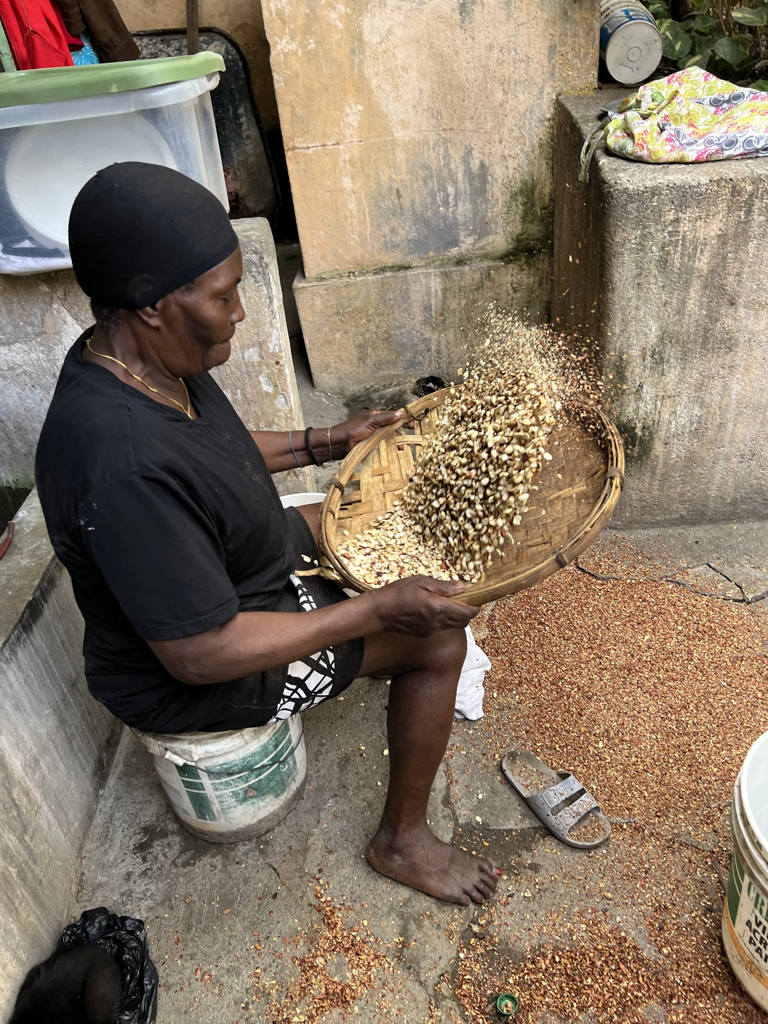 When there is a little break, I sometimes watch Mme Fredley grill peanuts to make her amazing spicy peanut butter. In fact, along with spaghetti Haitian style (with sliced hotdogs, onions and ketchup) one of my favorite breakfasts here in Haiti is what is actually an “artisanal” peanut butter sandwich made, of course, with locally grown peanuts, uniquely spiced by each maker, ground by hand in a mill designed for this purpose and enjoyed along with a nice cup of local coffee - yum!
