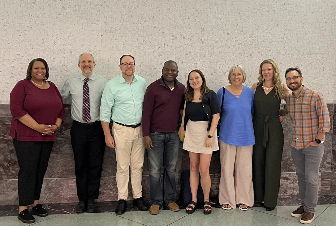 During their 2024 Board Retreat, BLUME Haiti Board Members attend a performance of Haitian piano works by Marianne Parker, presented by Crossing Borders Music at the Chicago Public Library. From L to R: Crossing Borders Music Board President Casandra Holliday, Tom Clowes (also a founder of Crossing Borders Music), Scott Harrison, Ricardo Lesperance, Rachael Cohen, Janet Anthony, pianist Marianne Parker, and Phil Bravo.